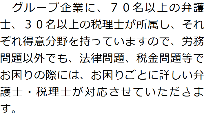 1 グループ企業の弁護士と連携し、紛争性の高い労働問題にも対応可能!